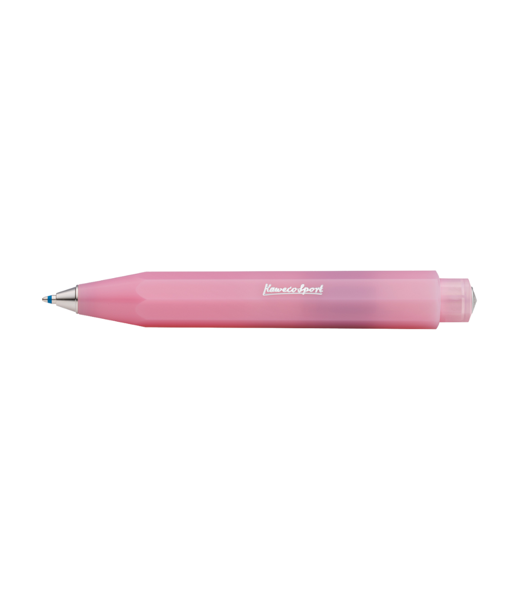 The writing instruments in the Frosted Sport series come in fresh, pastel colors and feature a slightly opaque, milky plastic. This series gives the classic Kaweco Sport a completely modern touch. To complement the cool color tones, elements such as the logo cap are finished in silver. The ballpoint pen is 10.5 cm long and features a high-quality heart-shaped mechanism. This mechanism operates with exceptional precision and is silent when the push button is pressed.