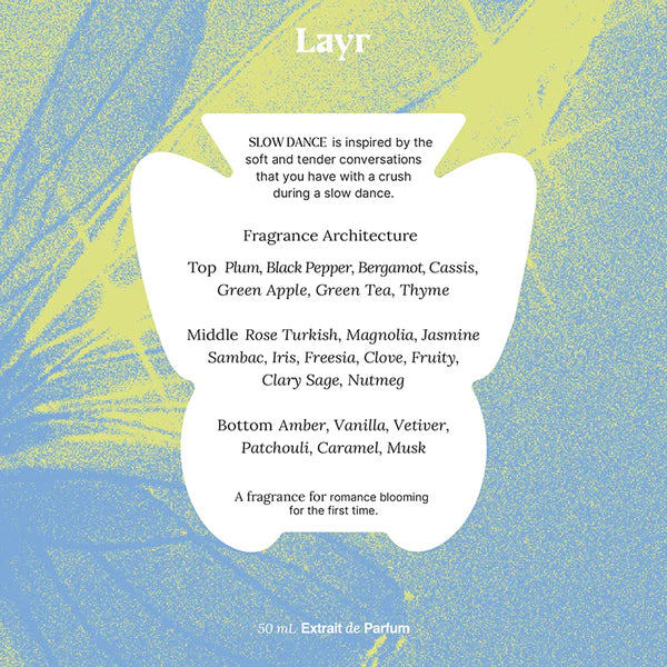 <p><span data-sheets-textstyleruns='{"1":0,"2":{"4":11,"5":1}}{"1":11,"2":{"4":11}}{"1":346,"2":{"4":11,"5":1}}{"1":363,"2":{"4":11}}{"1":409,"2":{"4":11,"5":1}}{"1":431,"2":{"4":11}}{"1":661,"2":{"4":11,"5":1}}{"1":679,"2":{"4":11}}{"1":721,"2":{"4":11,"5":1}}{"1":738,"2":{"4":11}}' data-sheets-userformat='{"2":769,"3":{"1":0},"11":4,"12":0}' data-sheets-value='{"1":2,"2":"Slow Dance is a scent of romance blooming for the first time. Real love is slow burning. It takes time and lets itself bloom day by day. This fragrance is inspired by the soft and tender conversations that you have with a crush during a slow dance. It’s true what they said that only fools rushed in. For the genuine-hearted, this is for you. \n\nHighlight Notes: Green Apple, Green Tea, Clove, Turkish Rose.\n\nFragrance Architecture\nTop: Plum, Black Pepper, Bergamot, Cassis, Green Apple, Green Tea, Thyme\nMiddle: Rose Turkish, Magnolia, Jasmine Sambac, Iris, Freesia, Clove, Fruity, Clary Sage, Nutmeg\nBottom: Amber, Vanilla, Vetiver, Patchouli, Caramel, Musk\n\nOlfactory Purpose: For date nights and special occasions. \n\nFull Ingredients \nAlcohol, Fragrance, Glycerin, PPG-20 Methyl Glucose Ether, Water. \n\nExtrait de Parfum 50ml / 1.7 fl oz"}'><strong>Slow Dance</strong><span> </span>is a scent of romance blooming for the first time. Real love is slow burning. It takes time and lets itself bloom day by day. This fragrance is inspired by the soft and tender conversations that you have with a crush during a slow dance. It’s true what they said that only fools rushed in. For the genuine-hearted, this is for you.<br><br><strong>Highlight Notes:</strong></span></p> <p><span>Green Apple, Green Tea, Clove, Turkish Rose.</span></p> <p><span data-sheets-textstyleruns='{"1":0,"2":{"4":11,"5":1}}{"1":11,"2":{"4":11}}{"1":346,"2":{"4":11,"5":1}}{"1":363,"2":{"4":11}}{"1":409,"2":{"4":11,"5":1}}{"1":431,"2":{"4":11}}{"1":661,"2":{"4":11,"5":1}}{"1":679,"2":{"4":11}}{"1":721,"2":{"4":11,"5":1}}{"1":738,"2":{"4":11}}' data-sheets-userformat='{"2":769,"3":{"1":0},"11":4,"12":0}' data-sheets-value='{"1":2,"2":"Slow Dance is a scent of romance blooming for the first time. Real love is slow burning. It takes time and lets itself bloom day by day. This fragrance is inspired by the soft and tender conversations that you have with a crush during a slow dance. It’s true what they said that only fools rushed in. For the genuine-hearted, this is for you. \n\nHighlight Notes: Green Apple, Green Tea, Clove, Turkish Rose.\n\nFragrance Architecture\nTop: Plum, Black Pepper, Bergamot, Cassis, Green Apple, Green Tea, Thyme\nMiddle: Rose Turkish, Magnolia, Jasmine Sambac, Iris, Freesia, Clove, Fruity, Clary Sage, Nutmeg\nBottom: Amber, Vanilla, Vetiver, Patchouli, Caramel, Musk\n\nOlfactory Purpose: For date nights and special occasions. \n\nFull Ingredients \nAlcohol, Fragrance, Glycerin, PPG-20 Methyl Glucose Ether, Water. \n\nExtrait de Parfum 50ml / 1.7 fl oz"}'><br><strong>Fragrance Architecture</strong><br><strong>Top:</strong><span> </span>Plum, Black Pepper, Bergamot, Cassis, Green Apple, Green Tea, Thyme<br><strong>Middle</strong>: Rose Turkish, Magnolia, Jasmine Sambac, Iris, Freesia, Clove, Fruity, Clary Sage, Nutmeg<br><strong>Bottom:</strong><span> </span>Amber, Vanilla, Vetiver, Patchouli, Caramel, Musk<br></span></p> <p><span data-sheets-textstyleruns='{"1":0,"2":{"4":11,"5":1}}{"1":11,"2":{"4":11}}{"1":346,"2":{"4":11,"5":1}}{"1":363,"2":{"4":11}}{"1":409,"2":{"4":11,"5":1}}{"1":431,"2":{"4":11}}{"1":661,"2":{"4":11,"5":1}}{"1":679,"2":{"4":11}}{"1":721,"2":{"4":11,"5":1}}{"1":738,"2":{"4":11}}' data-sheets-userformat='{"2":769,"3":{"1":0},"11":4,"12":0}' data-sheets-value='{"1":2,"2":"Slow Dance is a scent of romance blooming for the first time. Real love is slow burning. It takes time and lets itself bloom day by day. This fragrance is inspired by the soft and tender conversations that you have with a crush during a slow dance. It’s true what they said that only fools rushed in. For the genuine-hearted, this is for you. \n\nHighlight Notes: Green Apple, Green Tea, Clove, Turkish Rose.\n\nFragrance Architecture\nTop: Plum, Black Pepper, Bergamot, Cassis, Green Apple, Green Tea, Thyme\nMiddle: Rose Turkish, Magnolia, Jasmine Sambac, Iris, Freesia, Clove, Fruity, Clary Sage, Nutmeg\nBottom: Amber, Vanilla, Vetiver, Patchouli, Caramel, Musk\n\nOlfactory Purpose: For date nights and special occasions. \n\nFull Ingredients \nAlcohol, Fragrance, Glycerin, PPG-20 Methyl Glucose Ether, Water. \n\nExtrait de Parfum 50ml / 1.7 fl oz"}'><strong>Olfactory Purpose:</strong><span> </span>For date nights and special occasions.<br><br><strong>Full Ingredients</strong><br>Alcohol, Fragrance, Glycerin, PPG-20 Methyl Glucose Ether, Water.<br><br><strong>Extrait de Parfum 50ml / 1.7 fl oz<br><br></strong></span></p> <div class="kt-inbox__info"> <div class="kt-inbox__sender" data-toggle="view"><strong>*BPOM NA18230600610*</strong></div> </div>